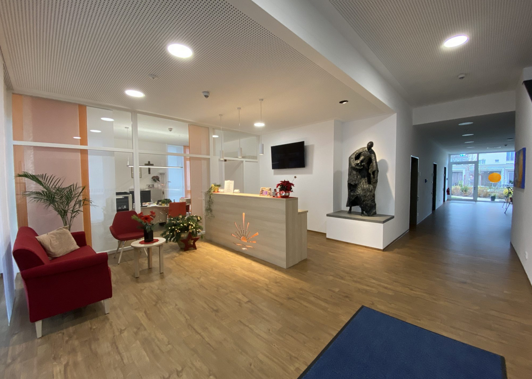 In dem Komplex mit vier Wohnbereichen (benannt nach den Heiligen Afra, Barbara, Katharina und Rosalie) gibt es insgesamt 56 Pflegeplätze. Zwölf davon bewohnen Schwestern der Congregatio Jesu. Eine von ihnen ist Sr. Sigrid, die am 1. Juni 2021 als erste CJ-Schwester dort eingezogen ist. Diesen Schritt hat sie seitdem kein einziges Mal bereut, erzählt sie in ihrem großzügigen Zimmer.
