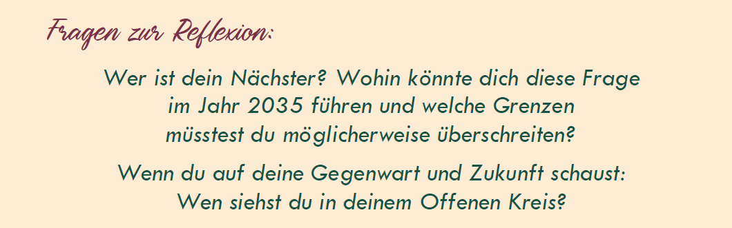 An diesem kalten Sonntag wurden sie ganz konkret gefragt: Wer ist mein Nächster? Das Bild des Offenen Kreises von Gefährtinnen tauchte vor meinem inneren Auge auf.