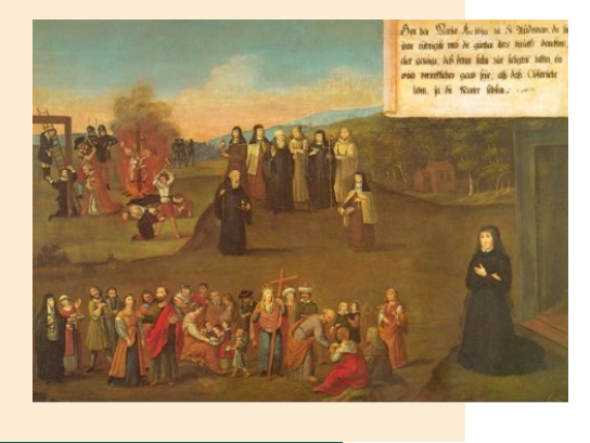 Unsere Zukunft sieht aus und fühlt sich an wie die Vergangenheit, die im „Gemalten Leben von Mary Ward” festgehalten wurde. Es ist ein bleibendes Bild: die beständige Gastfreundschaft, der Aufbau einer Gemeinschaft, das einander Lieben und alle Respek-tieren und letztendlich immer Ant-wort geben auf die Frage: Wer ist mein Nächster?