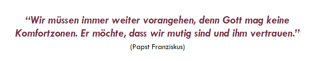 Während ich darüber nachdenke, wie die Zukunft unseres Instituts aussehen wird, kommt mir Mary Wards VERTRAUT AUF GOTT UND GOTTES VORSORGE in den Sinn.