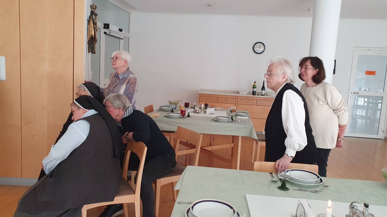 In der Kommunität Augsburg begann der Tag mit einem festlichen Gottesdienst, den unsere Organistin und Gefährtin mit allen Registern eröffnete. Wir sangen "Vertraut den neuen Wegen", das Ad majorem und das Te Deum durften nicht fehlen, um unsere Freude und Dankbarkeit auszudrücken.