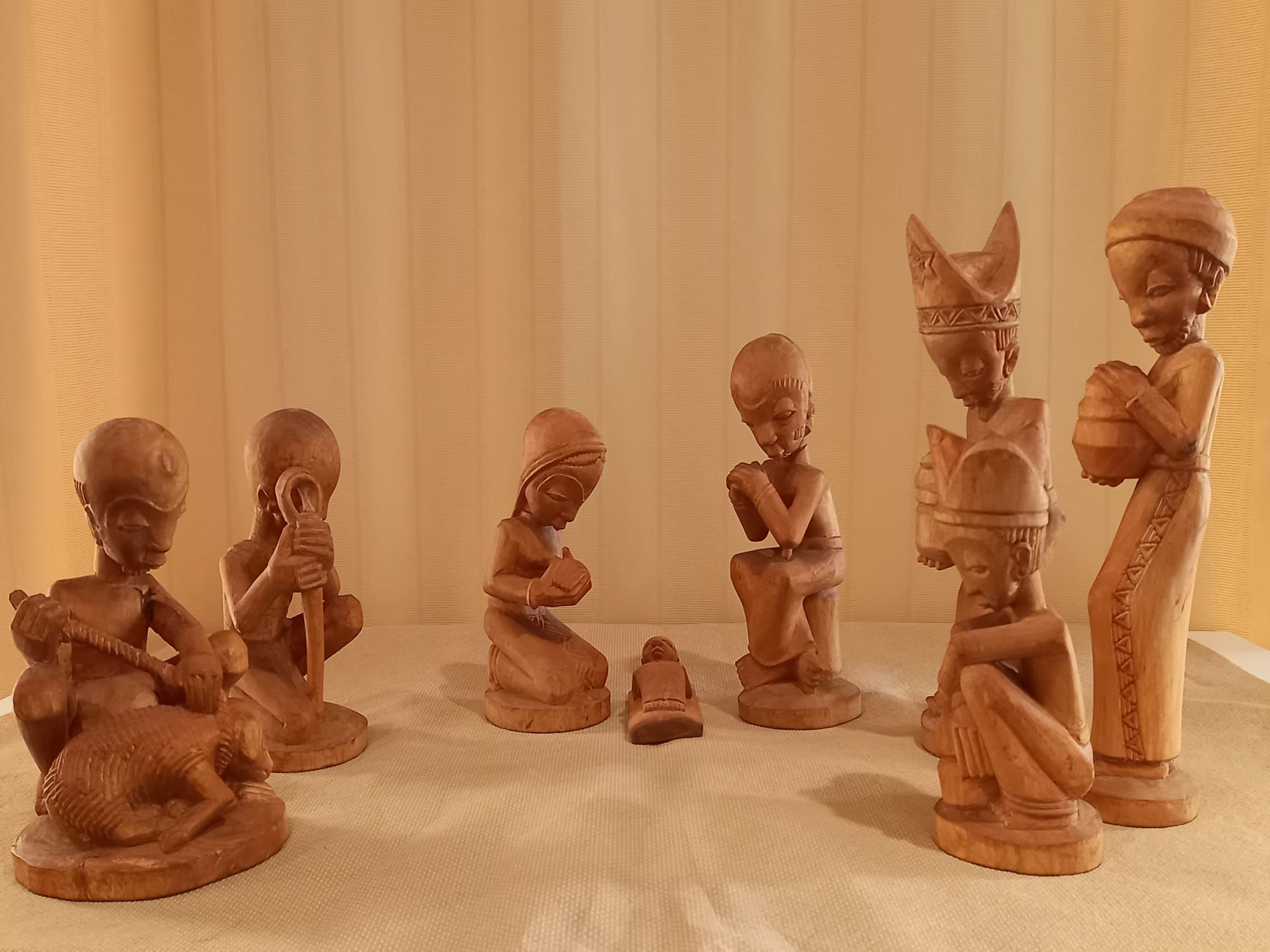 Aus rötlichem Holz geschnitzt, verbinden die Figuren unseren „Ort im Übergang“ mit den weit-weit im Süden ebenfalls zur Krippe gehenden Mitschwestern von heute.